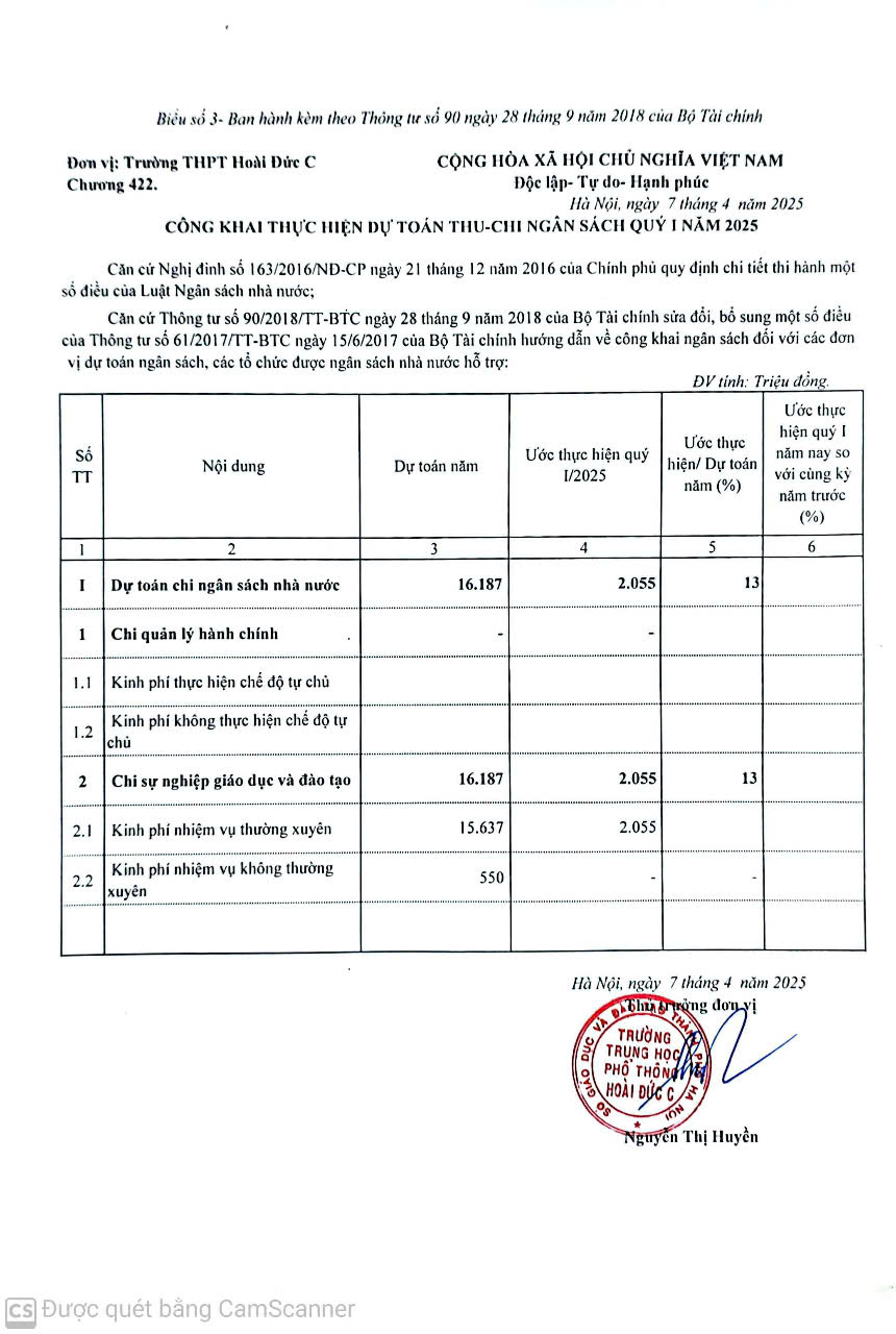 Công khai thực hiện dự toán thu - chi ngân sách quý i năm 2025