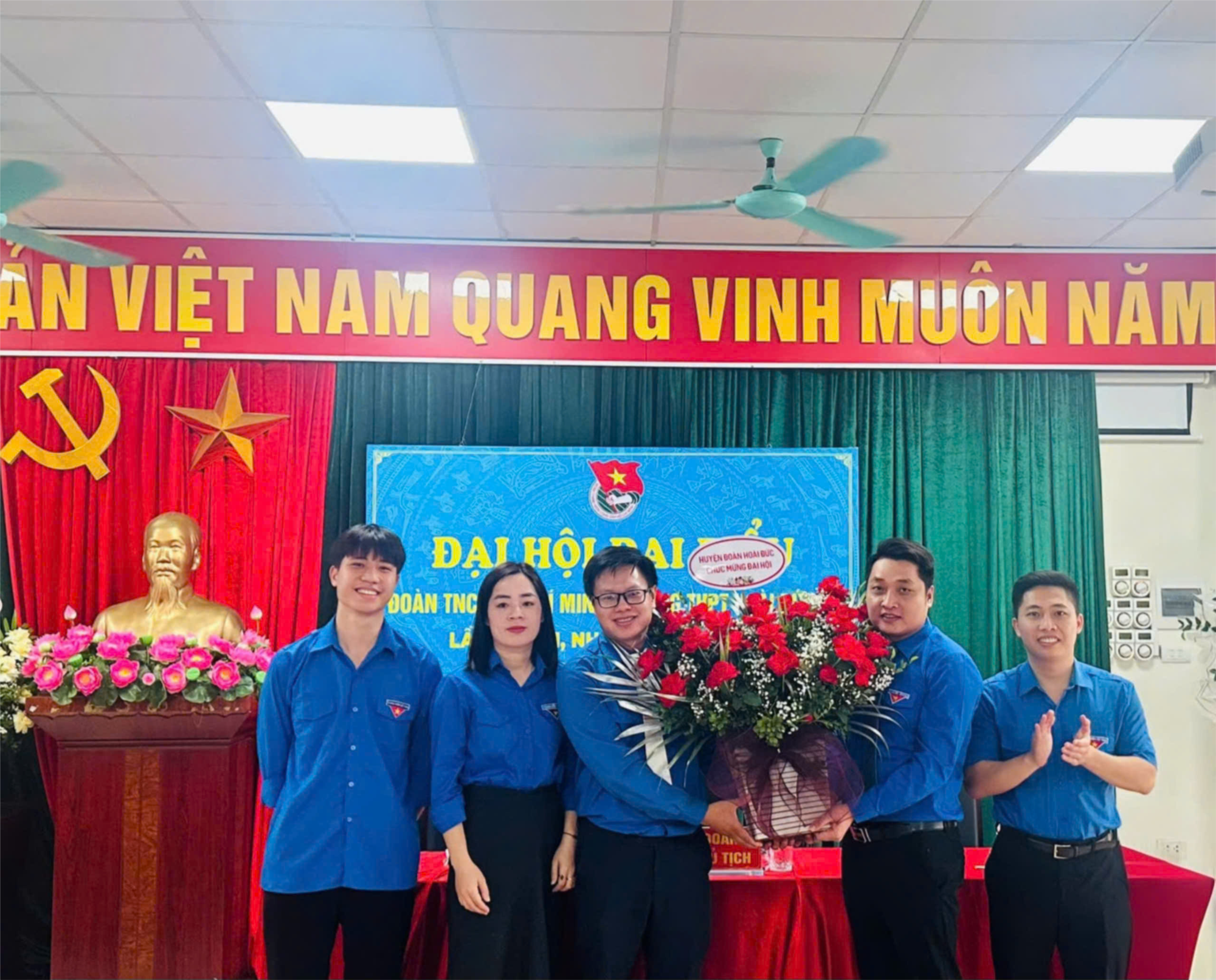 Đ/c Đỗ Đức Bảo - Bí thư huyện đoàn Hoài Đức tặng hoa chúc mừng